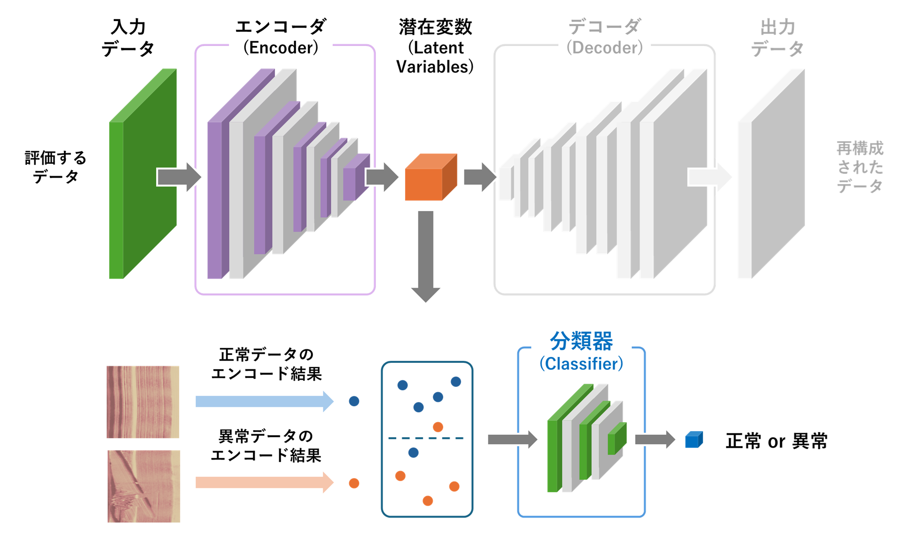 潜在変数に対して分類器を適用する異常検知の